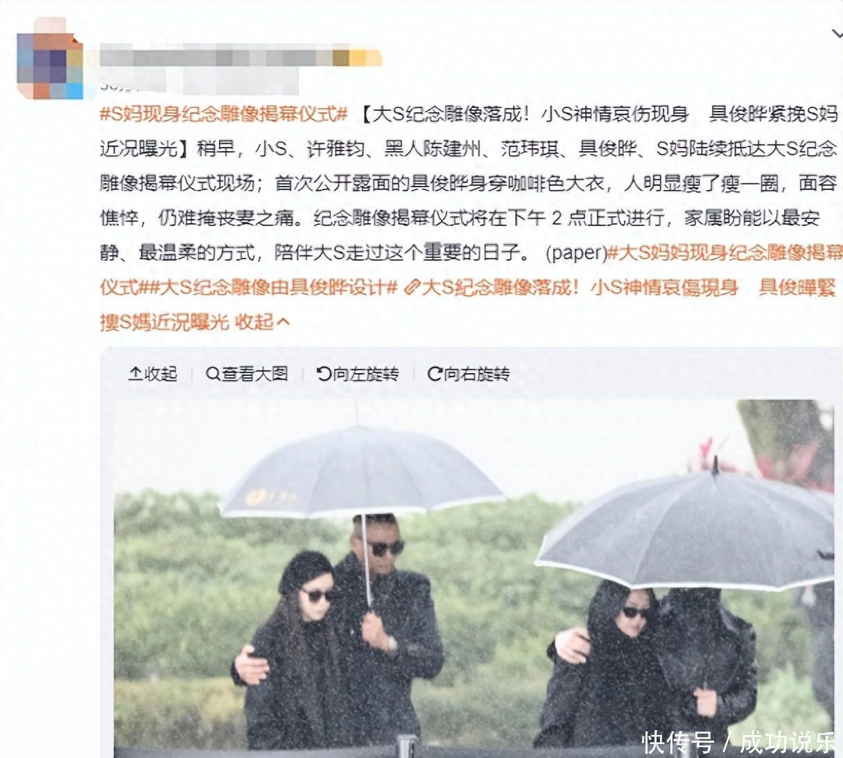 大S徐熙媛于2025年2月2日因流感并发肺炎离世,终年48岁。在她一周年忌日这天,家人举行了雕像揭幕仪式,小S、范玮琪等亲友纷纷到场,唯独两个孩子缺席,或许是不忍触景生情。