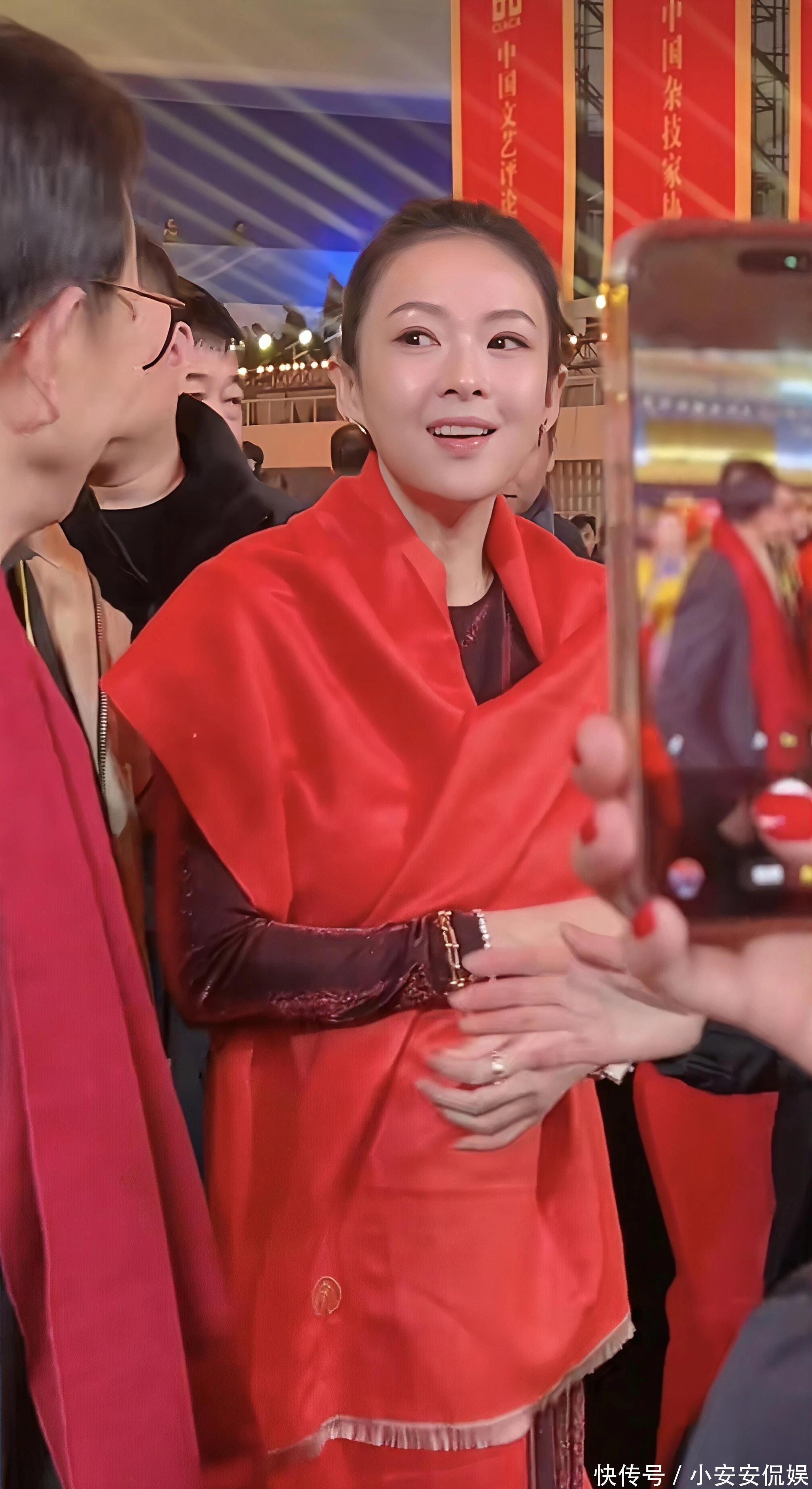 百花迎春晚上她身披红色围巾,穿酒红色长裙,优雅大方的气质再次美出新高度,仿佛容颜回春,娇嫩美丽!