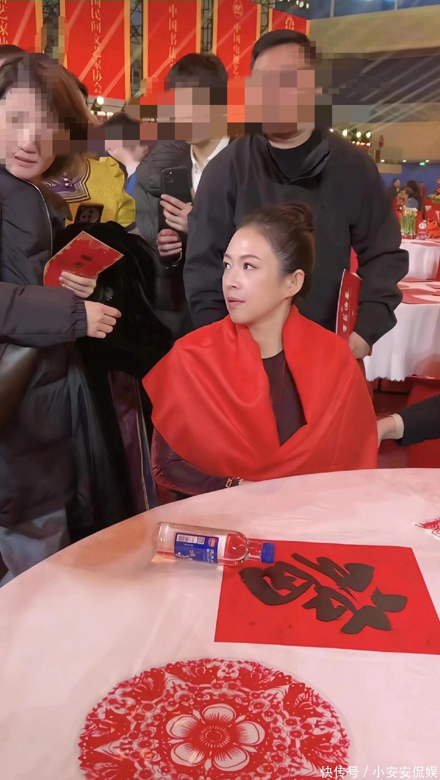 她坐在桌旁,当有人主动走过来表示想和她合照时,子怡姐马上起身,十分友好的微笑出镜。