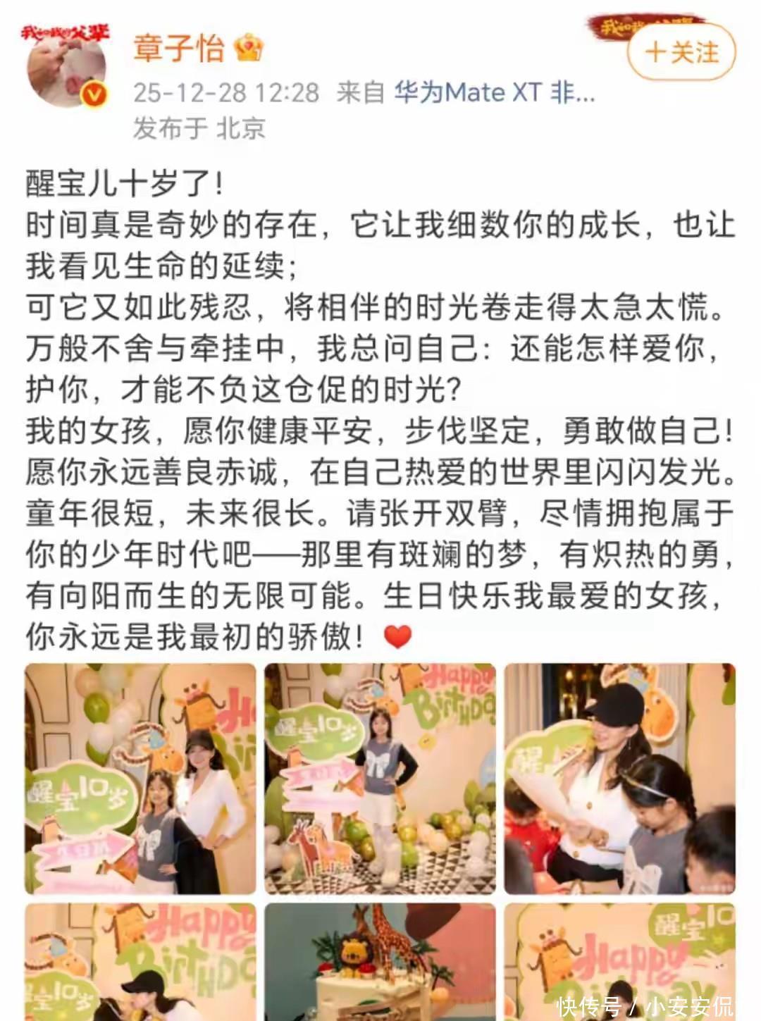 去年冬天女儿满十岁,对她而言欣慰又骄傲,醒醒的生辰当日,章子怡发了长文。
